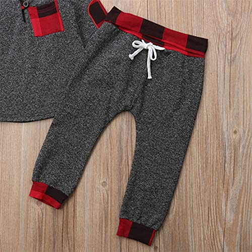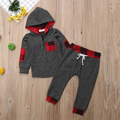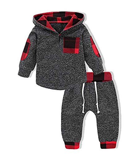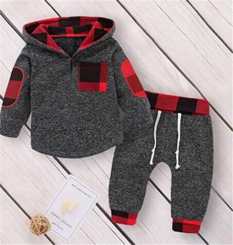 FUFUCAILLM 0-3T Infant Toddler Baby Boy Girl Plaid Hooded Sweatershirt Pants Christmas Outfit Winter Fall Clothes Set