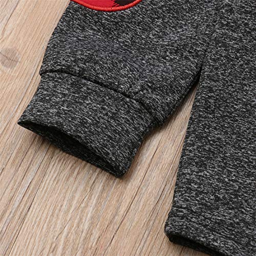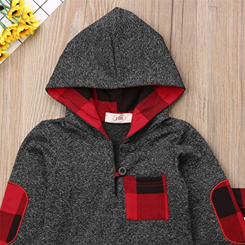 Fleece lined hoodie top, Red & Black plaid patch design, Long Sleeve, Grey hooded outfit set