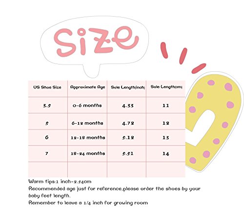 SIZE : Please measure baby’s feet length first and make a selection your shoes size refer to our Size Chart ,some buyers said the dimensions is a bit of bigger, please make a selection size carefully