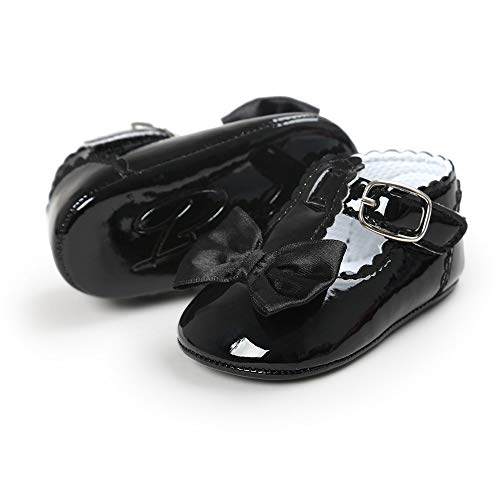 Meckior Infant Baby Girls Soft Sole Prewalker Crib PU Leather Mary Jane Shoes Princess Light Shoes 0-18 Months